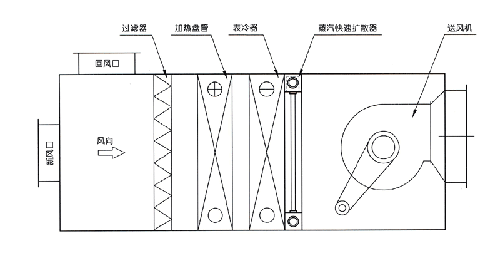 蒸汽快速擴散器在空調箱內安裝示意圖